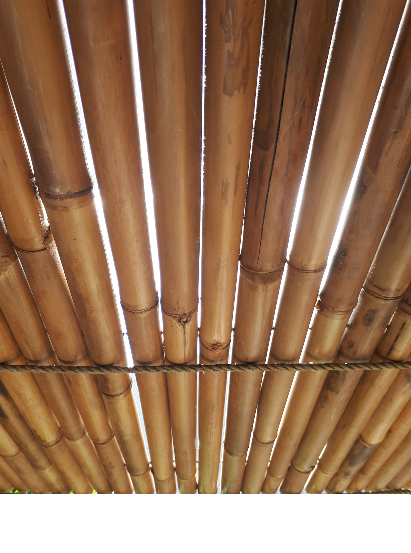 De hoogte van de Bamboe Mat Halfrond is ook aan te passen, zaag enkel van de onderkant van de mat en liever niet voorbij de staaldraden. Hierdoor kan de mat namelijk minder stevig worden. Gebruik bij het zagen van de Bamboe Mat Halfrond een scherp zaagblad met fijne tanden, zoals een Japanse Zaag. Voor het zagen, plak de bamboe stokken af met stevige tape op de zaagrand om te vermijden dat de bamboe gaat splinteren. Zaag rustig en zaag bij voorkeur met de hand.