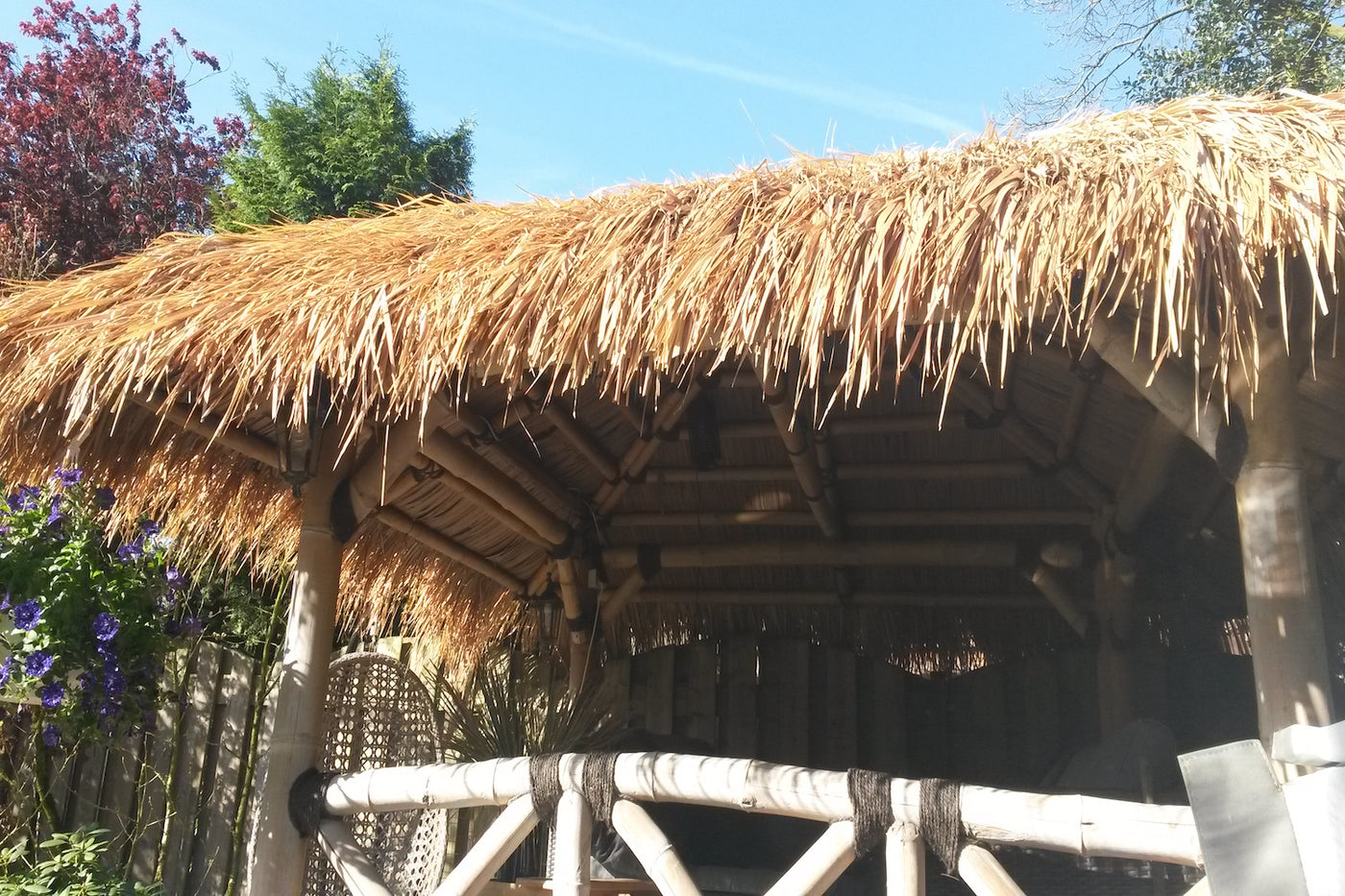 Onze stro daken zorgen voor een natuurlijke dakbedekking van jouw overkappingen, pergola's en parasols.