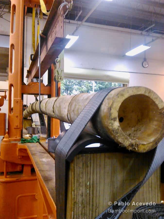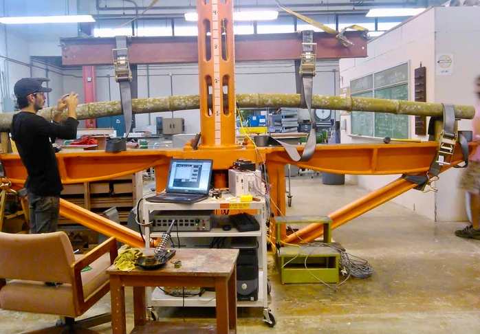 The four-point bending test prescribed in ISO 22157 was conducted at the University of Los Andes in Colombia. The bending test was performed on the same bamboo logs as the compressive and shear strength tests.